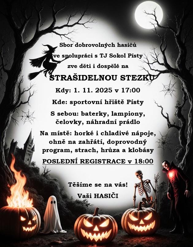 Strašidelná stezka 1.11.2025 v 17:00 na hřišti v Pístech
